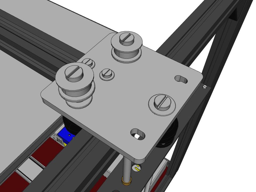 zu den hinteren Umlenkrollen der Gantry und bringt zudem mehr Stabilität für den Rahmen.