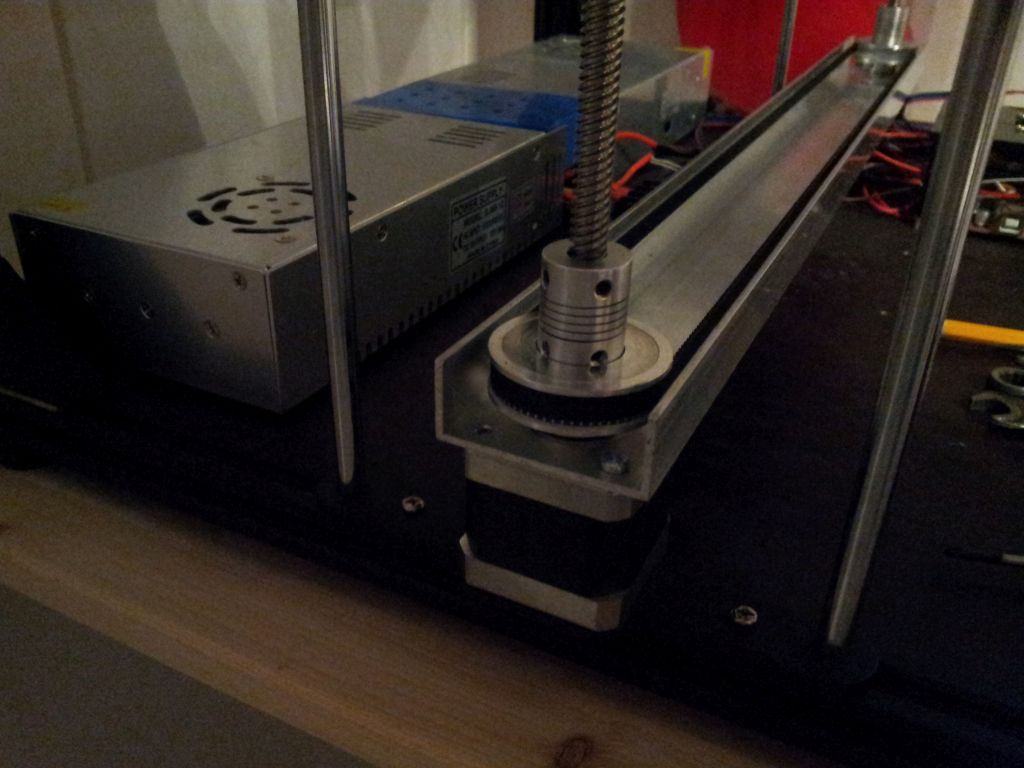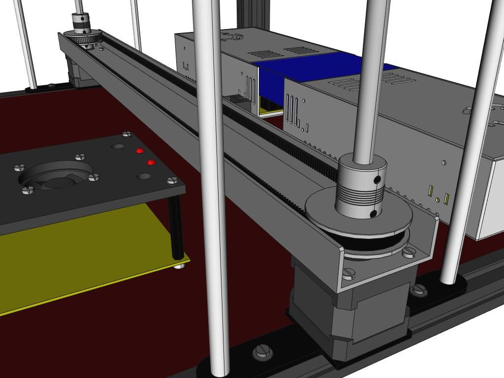 Die Synchronisation beider Z-Spindeln über 2 Riemenscheiben á 60 Zähne und einen geschlossenen Riemen von 1140mm Länge