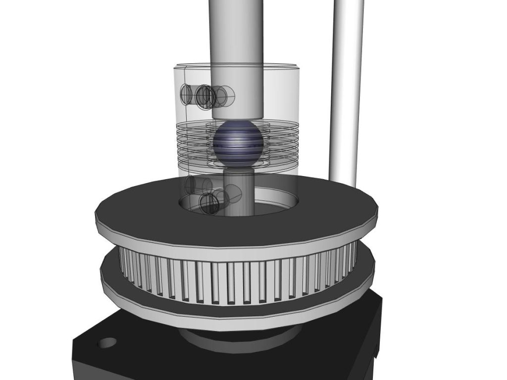 In beiden (in Längsrichtung leicht vorgespannten) Flex-Kupplungen ist jeweil eine 7,9mm grosse Kugel (Quelle: eBay) eingelegt,